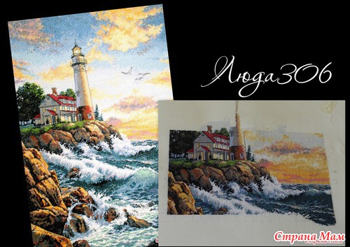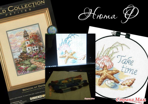 Дошила звёздочку и начала маячок (Dim 73262). Вот что навышивалось на сегодня, шью подбором нитками DMC