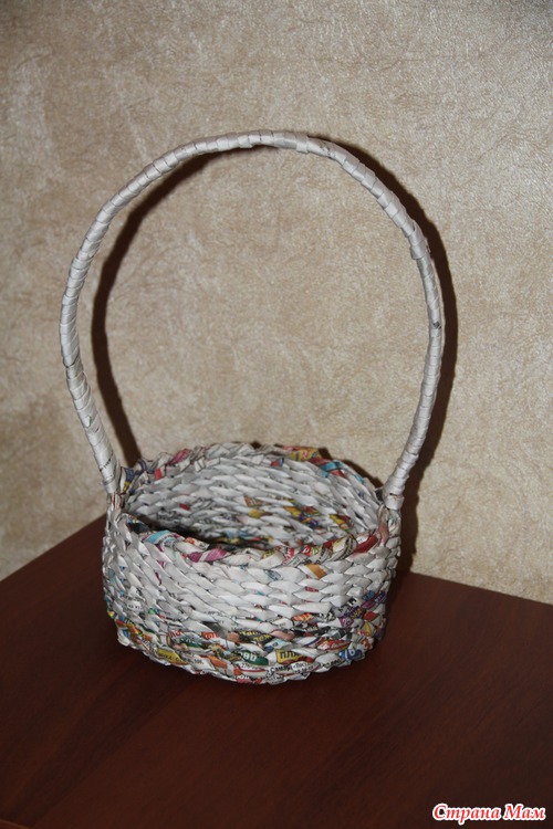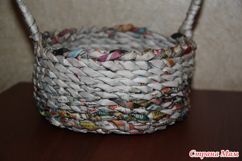 Было скучно - сплела корзину из газет
