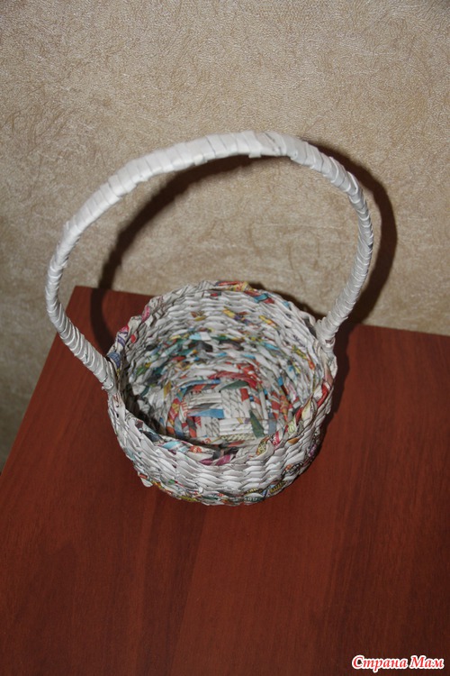 Было скучно - сплела корзину из газет