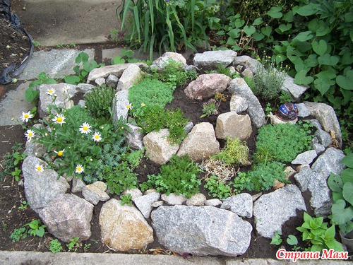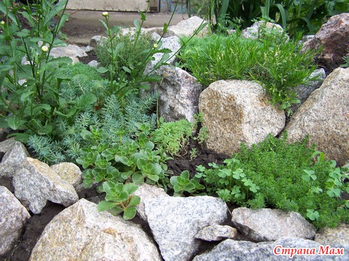 Месяц назад, мы с мужем разбили во в дворе рокарий. Я буквально на следующий же день притащила туда первые растюхе, так и не дав земле ( как было рекомендовано) сделать усадку.