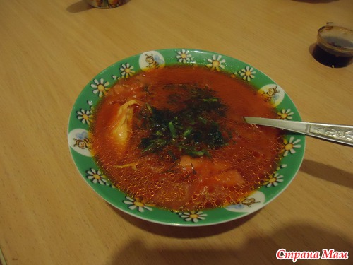 Но... к приходу дочек приготовила борщ... на куриной грудке. Запах-просто манит...