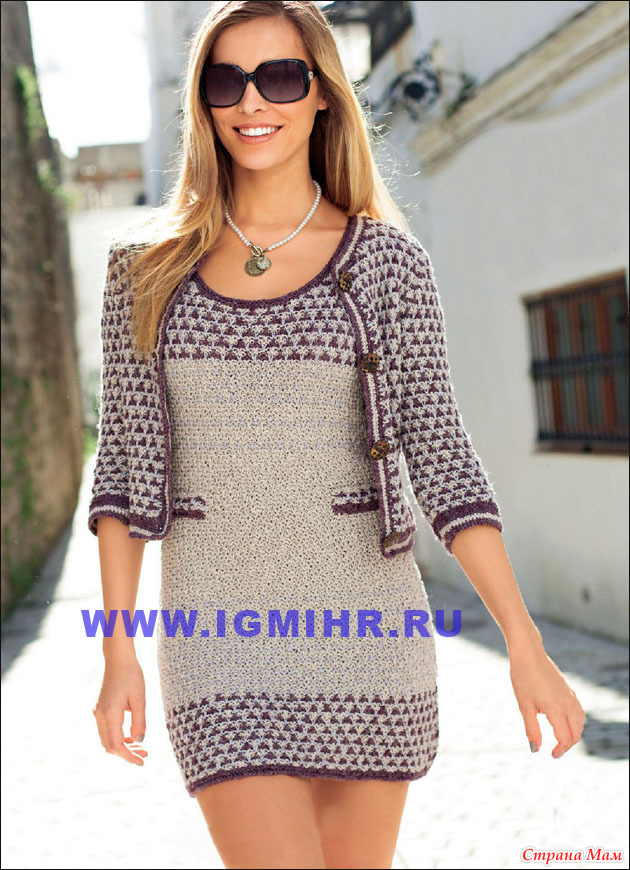 Классическая элегантность в стиле casual. Мини-платье и короткий жакет. Спицы и Крючок