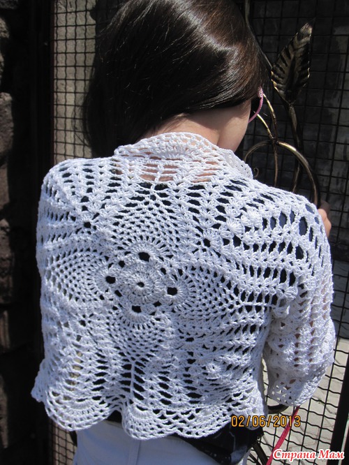 Связался Ажурный летний жакет для доченьки, нитки мерсеризованный хлопок- жасмин 75гр-220м, крючек 3, вязалось очень легко, остались нитки вяжу сумочку(покажу обязательно)