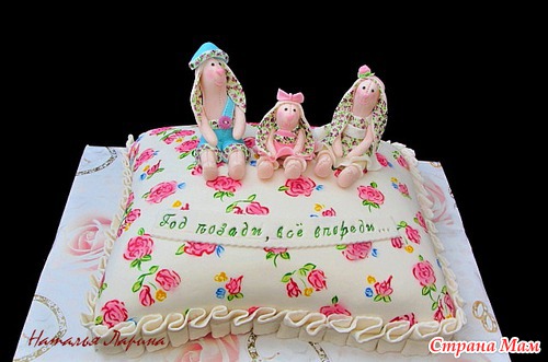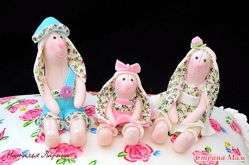 ... в Тильдов, очаровательные зайцы, просто не могу как они мне нра. Торт был на ситцевую свадьбу, мне заказчица прислала пару картинок этих зайчиков и... это что-то
