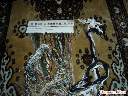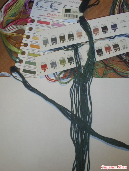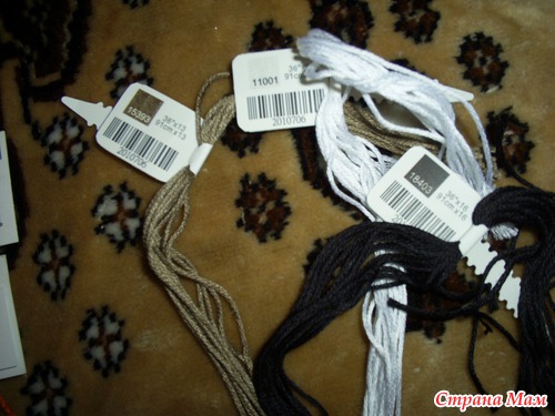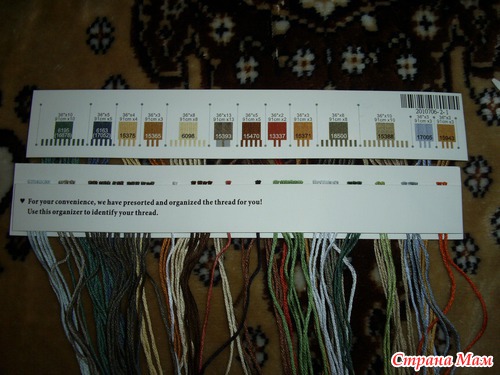 В наборах китайского производства нитки рассортированы по цветам и прикреплены на специальный органайзер, их не нужно разбирать из разных моточков и самим разделять по номерам, что существенно экономит время, затраченное на подготовительные работы.