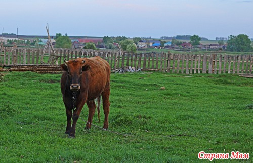Вот этот бычок, завидев, что я его снимаю, очень резво ко мне побежал (хорошо, что привязан был)