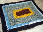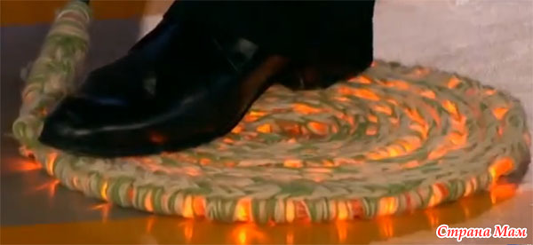 Коврик из лоскутков, которые крепятся на строительной сетке.