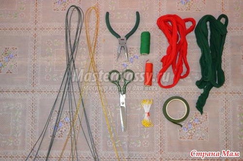 ножницы, капрон, проволока, пасатижи, тычинки (их можно заменять), нитки, тейп лента (не обязательна!)