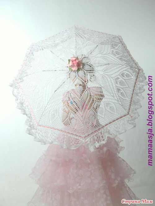 Процесс:Так как зонтик совершенно в цвет пряжи, ручку и шпиль обвязывать я не буду.