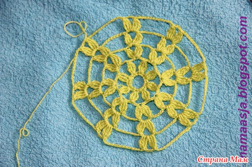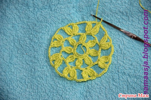 Дальше отступила от схемы и для укрепления кольца провязала в него 16 столбиков без накида (дальше СБН)