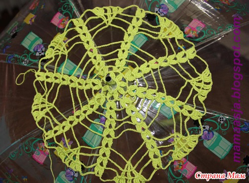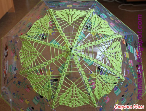 Путем голосования, девочки определили какой зонтик будет вязать... Победил зонт под №6, вот этот, с листочками: