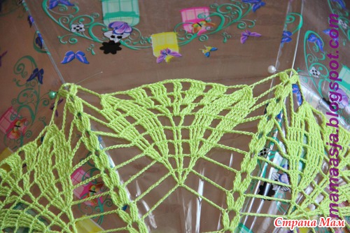 Асенька! У меня сразу вопросик! какой рисуночек (узор) добавить по низу? У тебя на голубом зонтике видно, что еще каемочка есть, а то просто сеточку скучно вязать))