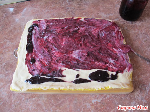 Намазать остывший рулет.