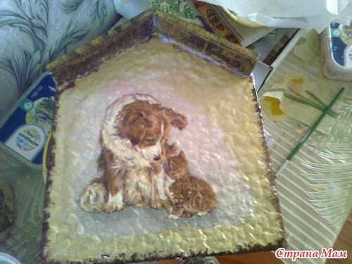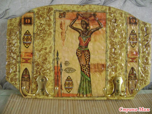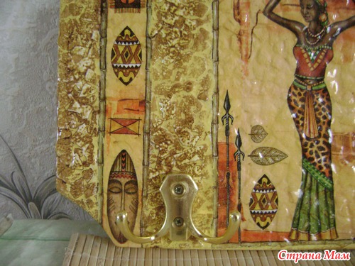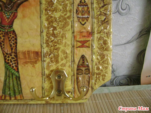 Но здесь я ее только покрыла лаком. А фото готовой ключницы у меня нет, т. к. она была выпрошена у меня кумой. Я отдала ей ее без крючков