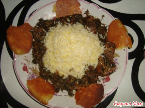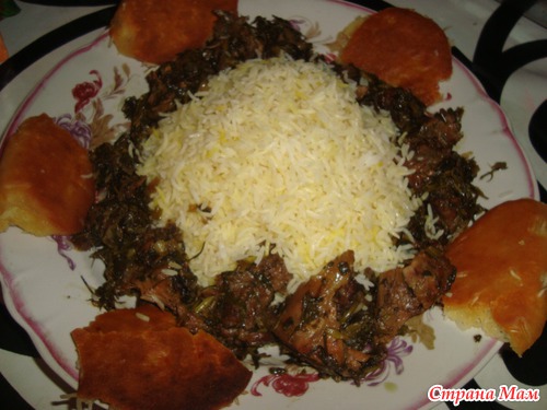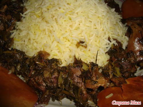 Всем к столу. Это истинное праздничное блюдо. Сабзи -ковурма Плов! рядом казмаг. лепешки которые прожарились на дне плова. Так вкусно!!!