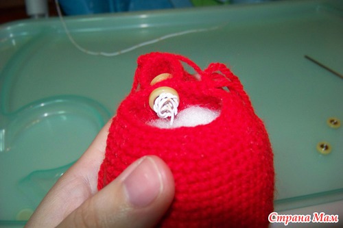 Если вы будите делать крепление головы на пуговицах, то крепим голову после 16р.
