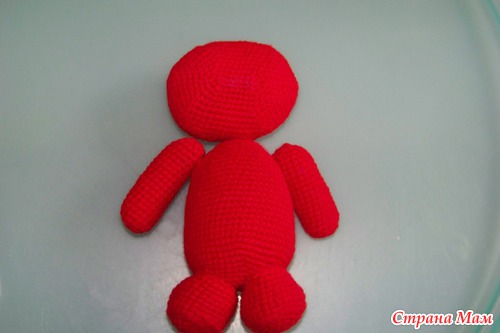 9р.-16р. (всего 8р.) 54сбн, связав 8рядов пришиваем ноги. Кому сложно пришивать на не готовую деталь, можно пришить ножки, как и все детали к готовому телу.