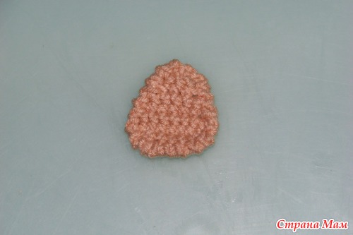 1р. 1приб., 7 сбн, 3сбн в 1петлю. Продолжаем вязать по обратной стороне цепочки из вп петель (по кругу) 8сбн =(20п)