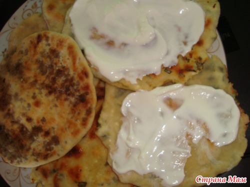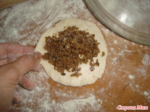 Еще сделала с мясом, с жаренным фаршем. Эти уже называются хычины. Дочка с мясом съела.