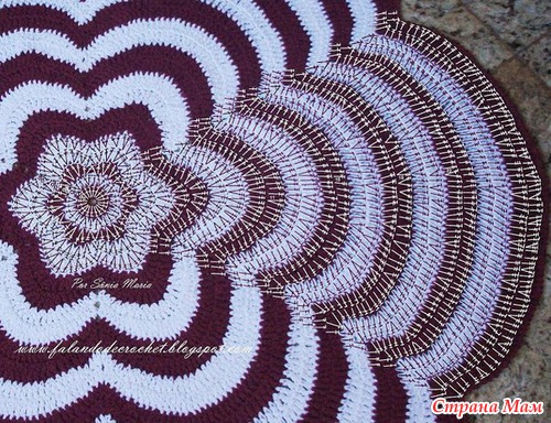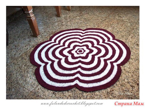 Вот такой коврик попался на просторах интернета. И очень мне понравился! А уж фантазии в цветовом решении есть где разгуляться!) Делюсь идей и подробными схемами с вами, дорогие рукодельницы! Удачи в творчестве и ровных петелек! Читать полностью