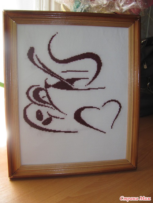 Вышивлась легко и быстро. Почему первая, спросите вы, потому как я кофеманка, и чувствую понесет меня в этой стезе
