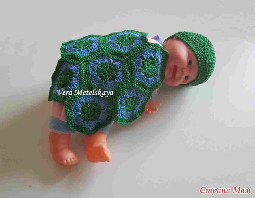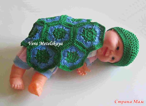 шапочка и покрывалко в виде панциряя переживала, будет ли похож на черепашку, но после того как я пыталась уложить для фотографии нашего пупса (а он упорно не хотел