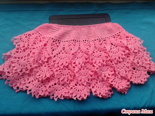 затем под рюшей вязала опять сетку.Прибавляла в 3 ряду через 10 клеточек.через 7 рядов опять рюша. У меня 3 рюшки ,но Вам нада 4 ,
