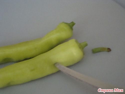 У перчика отрезать длинные плодоножки. Сделать проколы в нескольких местах.