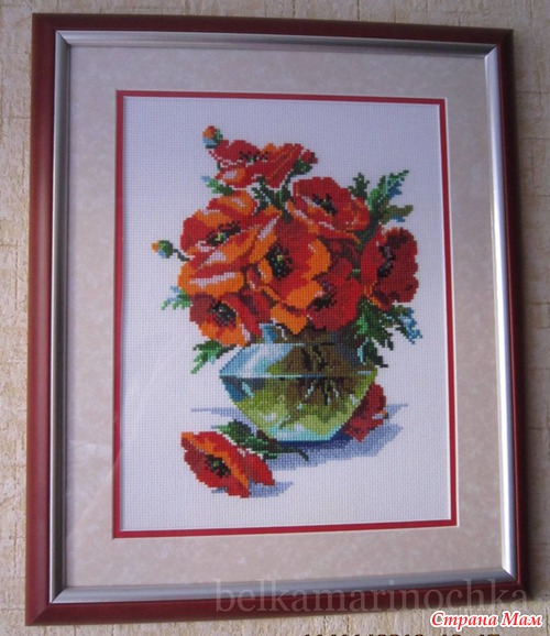 Золотое Руно Маки в вазе, 20,5х27, аида 14, 29 цветов, счетный крест.