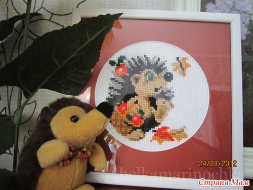 Ежик, 15х18, 7 цветов, нитки шерсть, счетный крест.