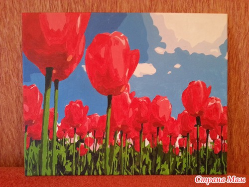 ), но безумно хотелось попробовать и я нашла у нас в магазине одну картину - тюльпаны, выбора совсем не было.