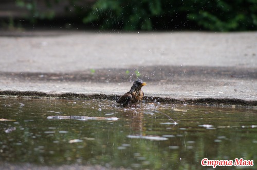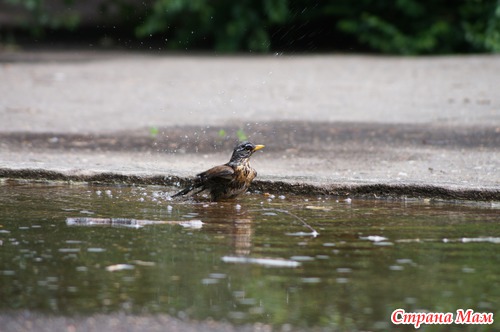 Просто решила поделиться ) Пока гуляли с малышом, наблюдали, как дрозд купался в лужице после дождя.