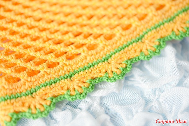 Желтая пряжа Cotton Soft от Mondial, зеленая Novelty от Vita, крючок 2.
