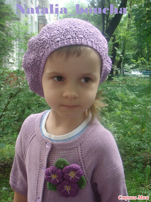 берет связан из Violet 100% мерсеризованный хлопок, 282 м, 50 гр. крючок от 2 до 3