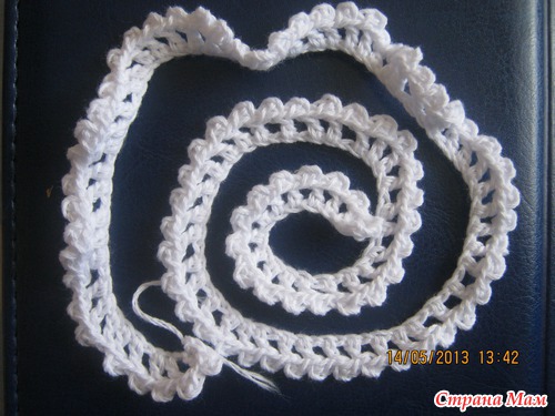 Сердцевинку я немножко видоизменила, навязала вот такую веревочку из петель с одним накидом и пико(вроде бы не перепутала)