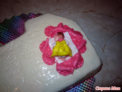 Белый на кипятке, клубника, шоколадные капли, сметана+маскарпоне, ганаш, мастика ММ + лепка визьен.