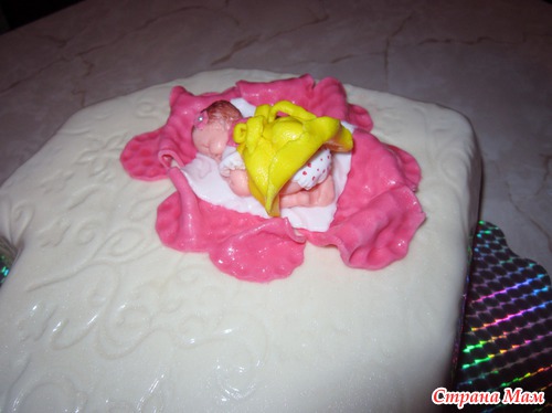 Белый на кипятке, клубника, шоколадные капли, сметана+маскарпоне, ганаш, мастика ММ + лепка визьен.