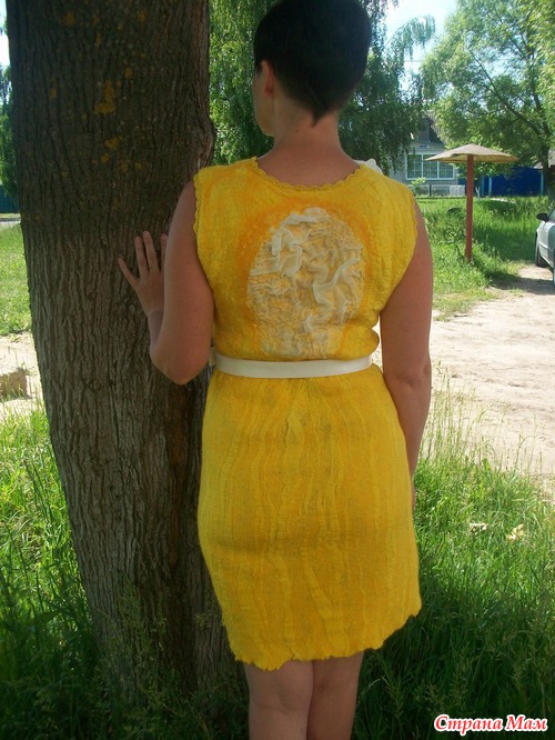 У Вас бывают затруднения с финансами или платье первое и страшно испортить шелк? У меня так и сложилось, платье хочется, а много шелка нет. Есть выход- из марли, да, да из аптечной марли!!! Пошла в аптеку купила 10 метров марли, покрасила нашей Российской краской и сварганила вот такое платье, на мой взгляд очень даже неплохо - это мое первое платье, да еще из марли... Цветок, вставка на юбке и спинке из искусственного шифона, только на груди кусочек натурального шелка. Марли ушло 7 метров, шерсти примерно 60гр. На эту мысль натолкнула Елена Смирнова, на Ярмарке-мастеров есть ее видео- мастер-класс