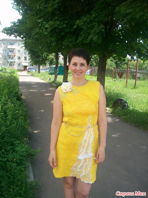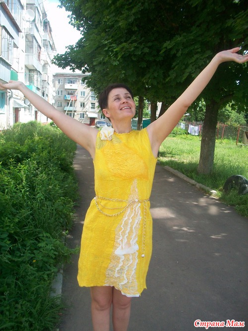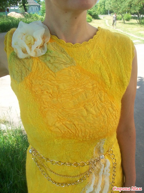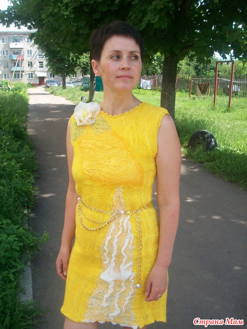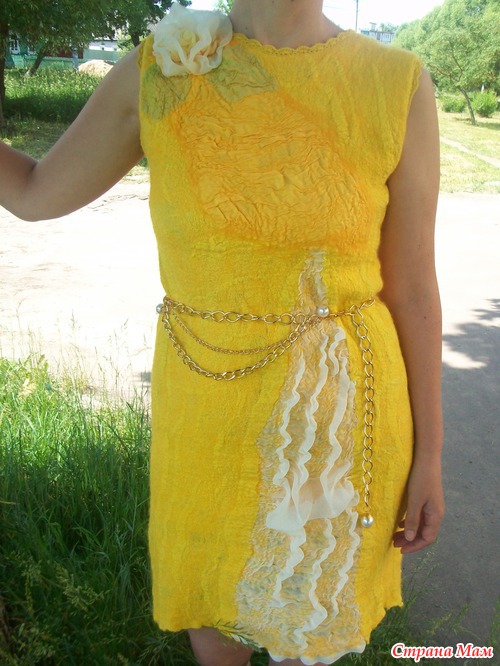 У Вас бывают затруднения с финансами или платье первое и страшно испортить шелк? У меня так и сложилось, платье хочется, а много шелка нет. Есть выход- из марли, да, да из аптечной марли!!! Пошла в аптеку купила 10 метров марли, покрасила нашей Российской краской и сварганила вот такое платье, на мой взгляд очень даже неплохо - это мое первое платье, да еще из марли... Цветок, вставка на юбке и спинке из искусственного шифона, только на груди кусочек натурального шелка. Марли ушло 7 метров, шерсти примерно 60гр. На эту мысль натолкнула Елена Смирнова, на Ярмарке-мастеров есть ее видео- мастер-класс