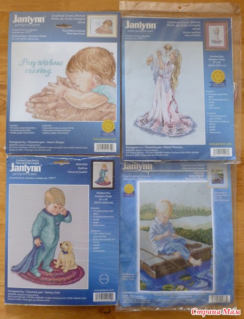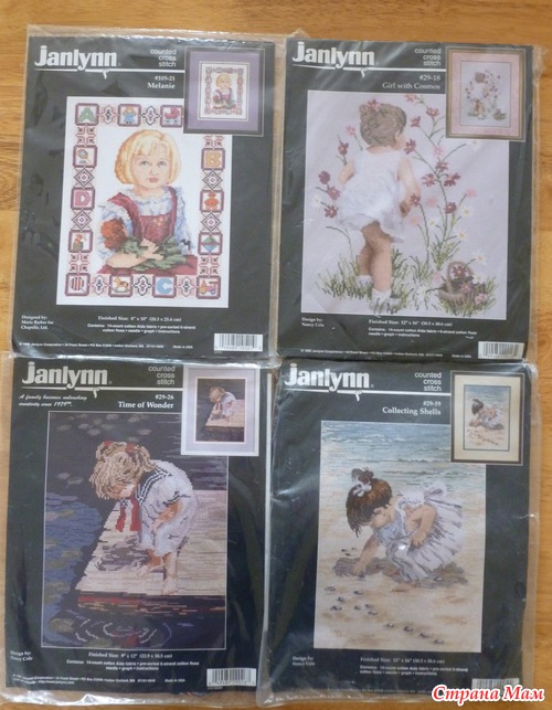 Конечно, мне далеко для коллекций опытных вышивальщиц, но последнее время меня всё сильнее тянет к этому делу. А началось с того, что запала душа моя на набор от Janlynn "Девочка с космеями", выкупила его на аукционе eBay.co.uk и меня понесло, пока только 46 наборов купила - думаю ещё прикупить.