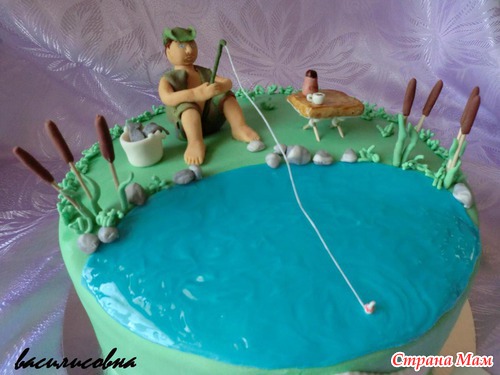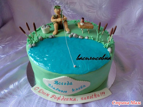 этот тортик заказала дочь для любимого папы... спрашиваю"Что любит, чем увлекается"..."рыбалка... и любит кофе... но после болезни ему теперь нельзя его пить"