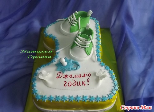 Ну вот, значит у меня нет способности на это дело, ведь у меня ужасные торты на самом деле, и мишки у меня не красивые и фантазии не хватает. Я боюсь единичку обтягивать мастикой, квадратные торты, сердечко всё никак не решусь сделать. Не хватает уверенности в себе.