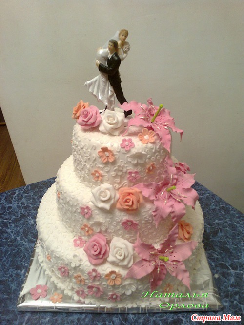 первый день пеку и обмазываю кремом, на следующий день обтягиваю и украшаю, лепку стараюсь сделать за ранее, но не всегда получается, вот и сижу до 2 ночи с тортиками