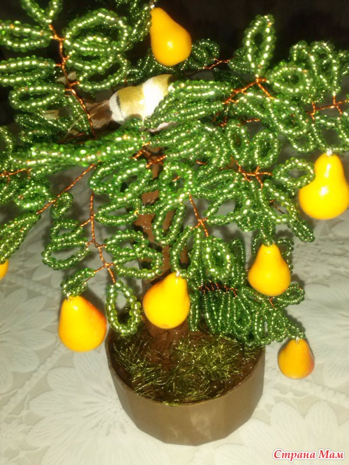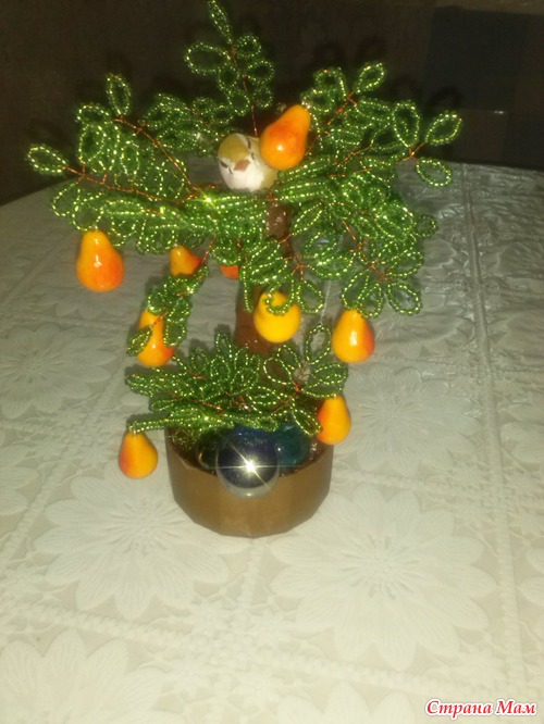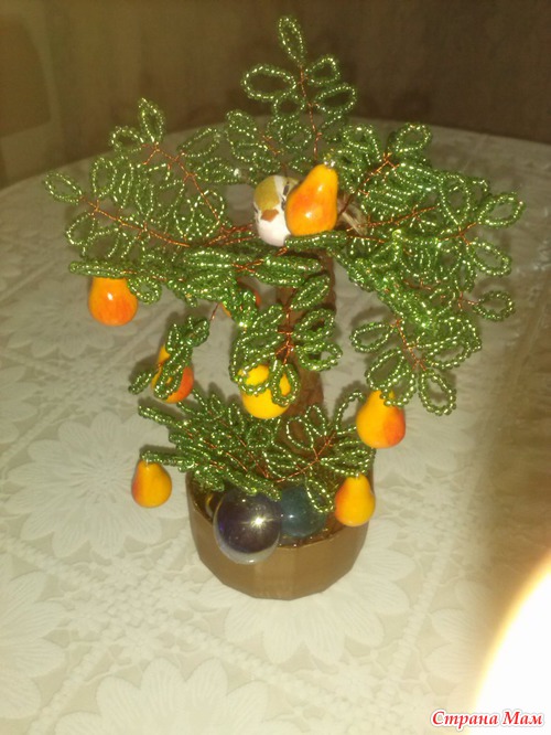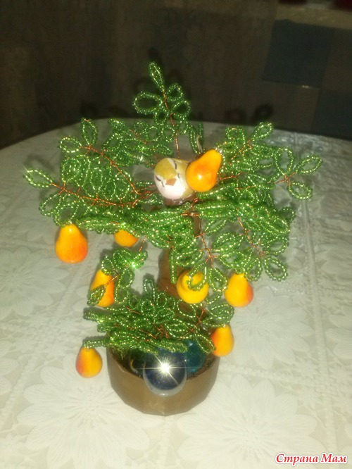 Насмотрелась я на мини деревца у многих рукадельниц из бисера, бусин, камней и решила тоже небольшое сделать))))))Вот такое грушевое дерево вышло за один день с перерывами))))))
