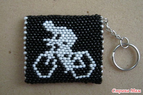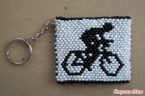 Мой муж занимается велоспортом, непрофессионально, для себя. Этот брелок я сделала для него в подарок на годовщину нашей свадьбы. Размер 5,4х4,8. Схема моя.