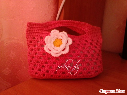 .. Помнится, видела я такую сумочку, ну или похожую, на просторах Всемирной паутины. И связала дочке, по памяти, вот такую сумочку, в садик игрушки носить. Пряжа Кировская Фиалка, крючок № 2.5. Размеры сумки 18*14 см. Хотелось бы еще к сумочке панамку, но из такой пряжи не хочется. Значит, в скором времени свяжется новая сумочка, и к ней панамка
