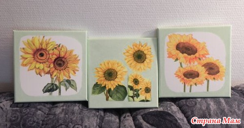 Эти 3 небольшие картины, каждая размером 20х20, подарены родителям на новоселье, на удачу.