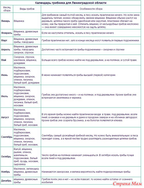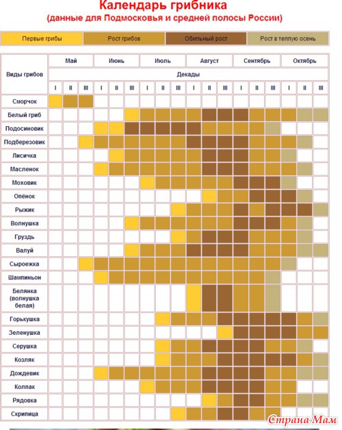 На просторах интернета нашла календарь грибника. Забирайте на вооружение