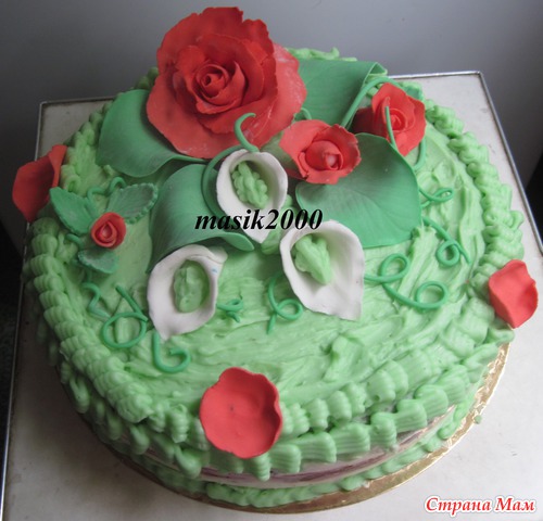 Полностью кремом не оформляла, т. к. тортик для домашних, да и с суфле крем соскальзывал.