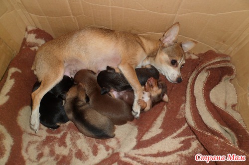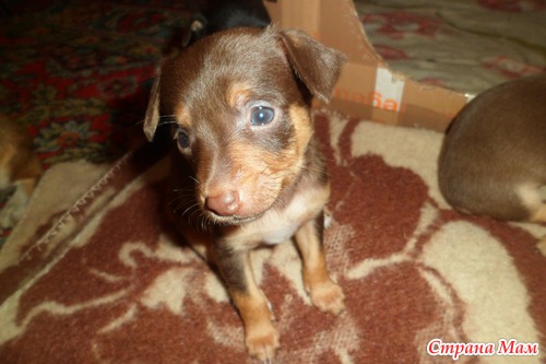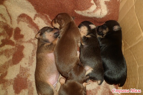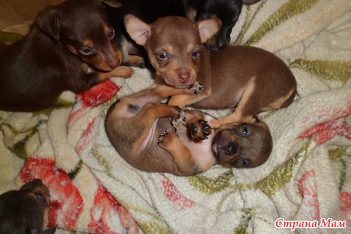 12 мая родились наши прекрасные малютки-пинчеры)) Роды были нелегкими, но мы справились)) Рожали как и в первый раз все вместе)) На свет появились 5 милашек (как я и ожидала). Сейчас им почти месяц )) Скоро разъедутся наши "детки" по домам...) Хочу поделиться фото))